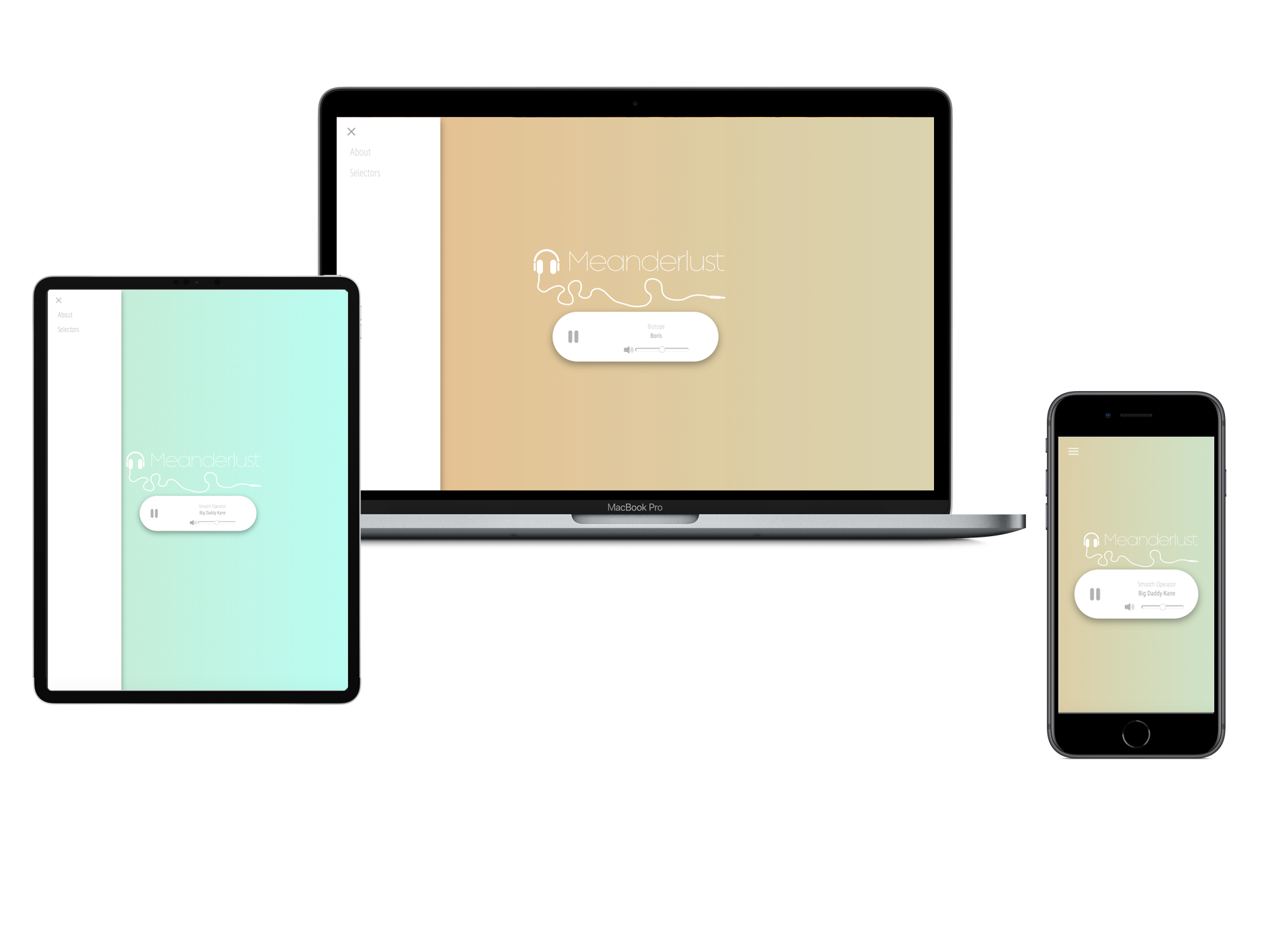 I wanted to keep the design of the site minimal and created a simple media player in CSS, adding icons for the play button and volume control which were made in Adobe Illustrator. This was set to a backdrop of an animated CSS gradient which evokes images of water and sky.