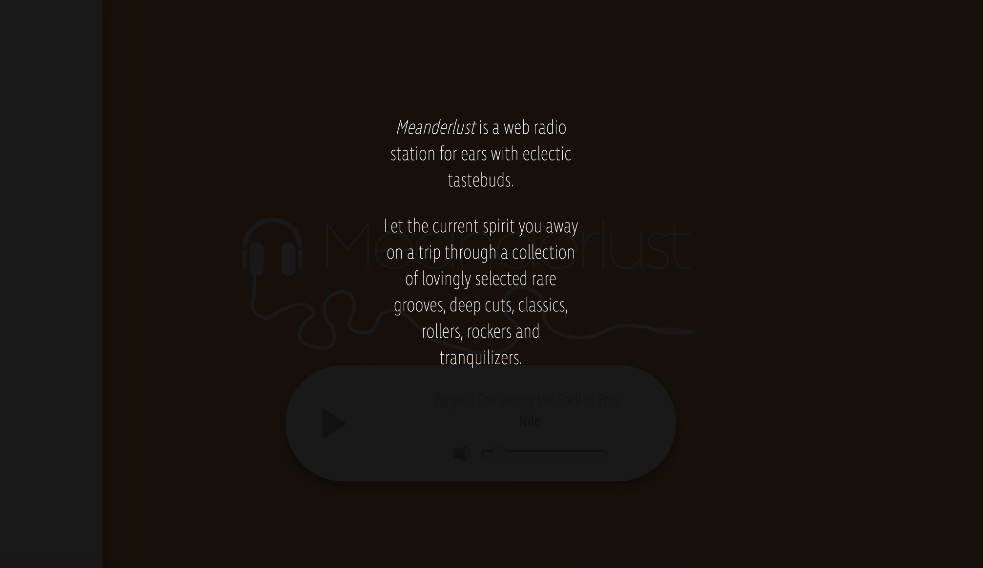 The next job was to come up with a name. We wanted a name that reflected the diverse variety of music that would be played with both of us having quite broad, eclectic tastes in music. We settled on Meanderlust, a take on the term wanderlust which was chosen to suggest an aimless and winding journey through a mix of musical genres, much like the seemingly aimless winding meanders of a river which carry the water through many changes in direction. This was in the inspiration behind the logo, in which the cable attached to the headphones curves and bends, mimicking the meanders of a river.